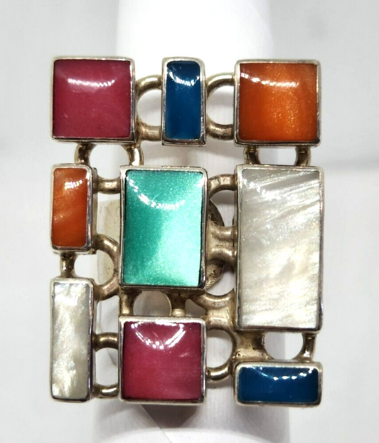 Sterling Silver Multi-Color Gemstone Ring, Size 8
