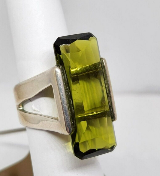 Brilliant Green Pear Cut Peridot & CZ Ring 14k Gold Size 7.5