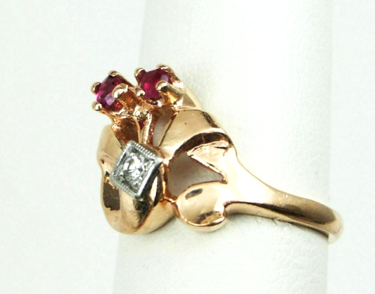 Retro 0.13ct tw Natural Ruby & Diamond Ring 14k Rose Gold Palladium Size 6.25