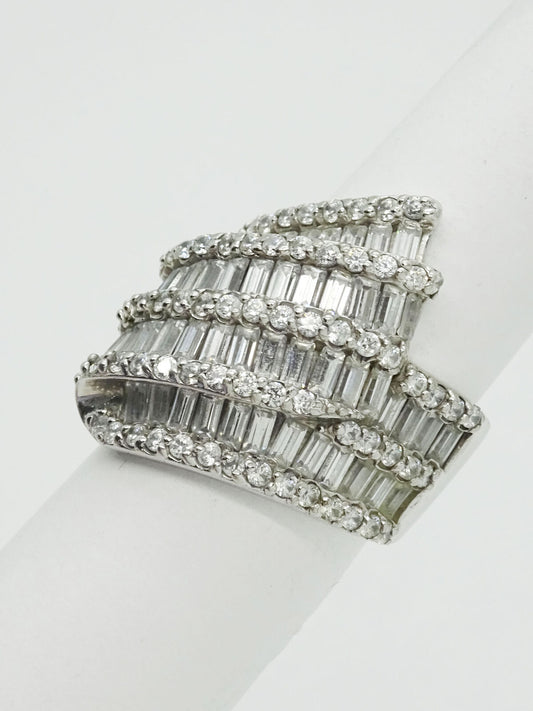 Sparkling 4 ctw CZ Wave Cocktail Sterling Silver Ring Size 6