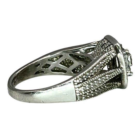 925 Silver Round Cut Three Stone CZ Ring Size 7 Engagement Bridal Intricate