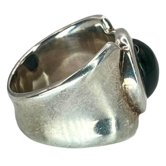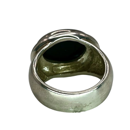 Vintage 925 Sterling Silver Black Onyx Ring Size 6.75 Modernist Chunky