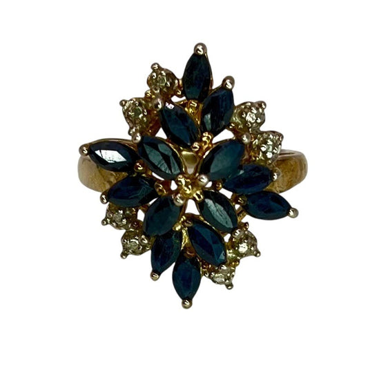 Ross Simons 925 Sterling Silver Gold Layered Cluster Blue Topaz CZ Ring Size 7