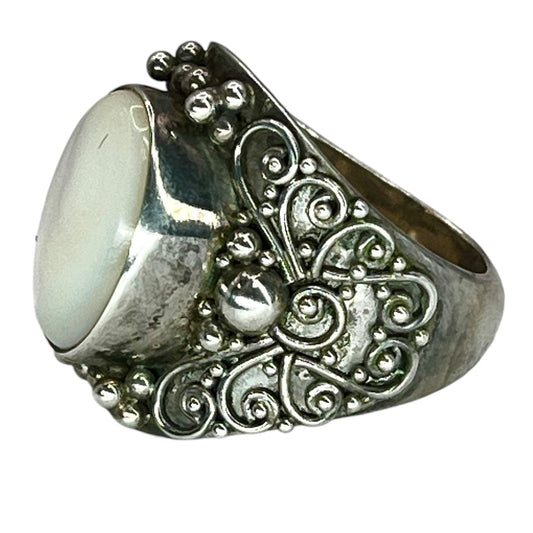 Vintage Ornate 925 Sterling Silver BA SUARTI Mother of Pearl Ring Size 6 Chunky