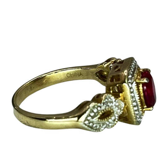 Vtg 925 Sterling Silver Yellow Gold Overlay Oval Dark Pink Topaz Ring Size 8.25