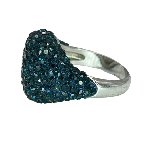 Silver Black Blue Cluster Stone Cocktail Statement Ring Size 8.25 Colorful