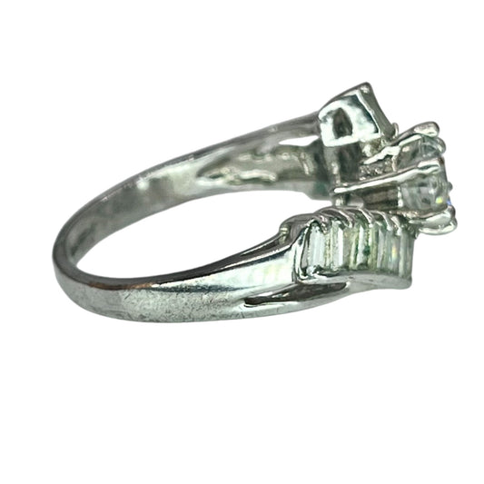 925 Silver Princess Cut Prong Setting 3 Stone CZ Ring Sz 6.75 Engagement Bridal