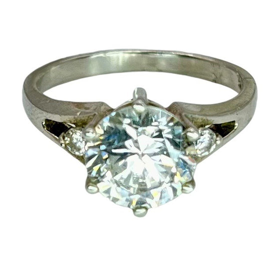 925 Silver Round Cut CZ Ring Size 9 Engagement Wedding Tapered Baguette Accents