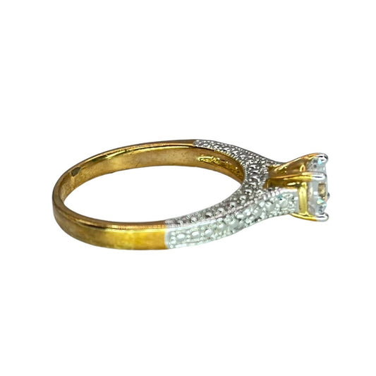 Gold Tone Round Cut Prong Setting CZ Ring Size 9 Formal Engagement Wedding