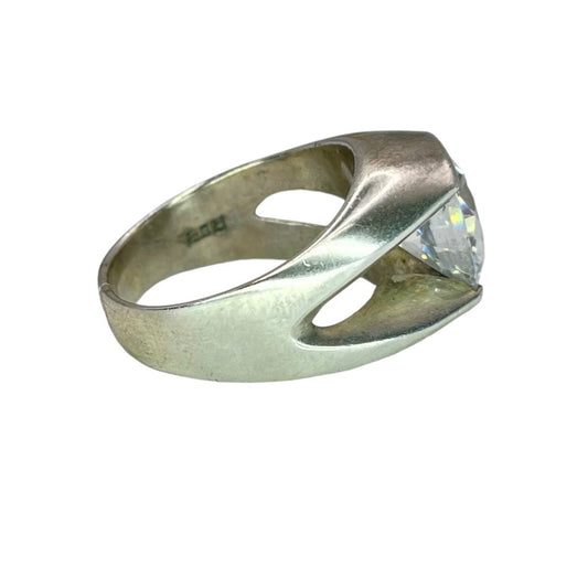 925 Sterling Silver Round Cut CZ Ring Size 9 Chunky Engagement Wedding