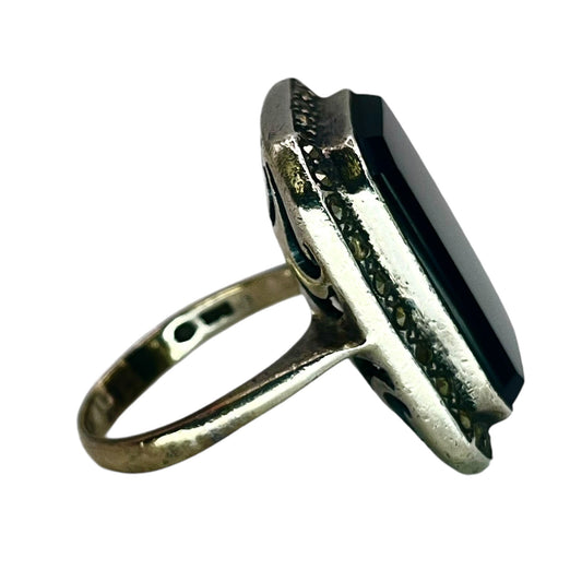 925 Sterling Silver Art Deco Onyx and Marcasite Ring Size 10.25 Large Chunky