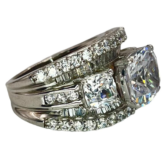 925 Sterling Silver Baguette and Round Cut Cubic Zirconia Ring Size 8.75 Band