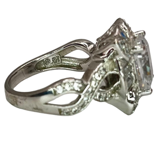 925 Sterling Silver Three Stone CZ Princess Cut Engagement Ring Size 7.75