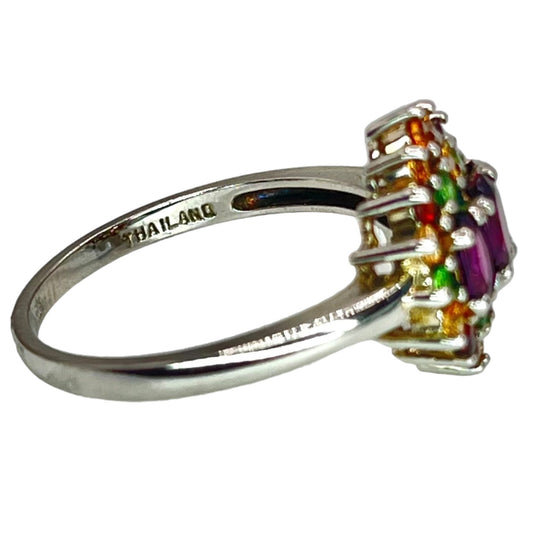 Vintage 925 Sterling Silver Ring Size 10 Floral Burst Garnet Peridot Citrine