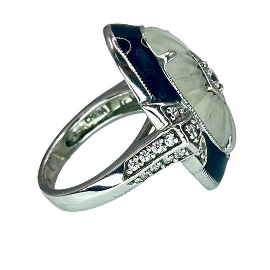 Victoria Wieck 925 Silver Art Deco Victorian Style CZ Ring Size 5 Black Enamel