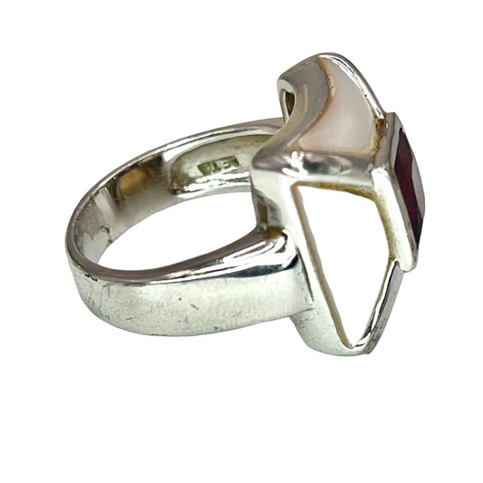 SEDA 925 Sterling Silver Mother Of Pearl and Amethyst Square Ring Size 8