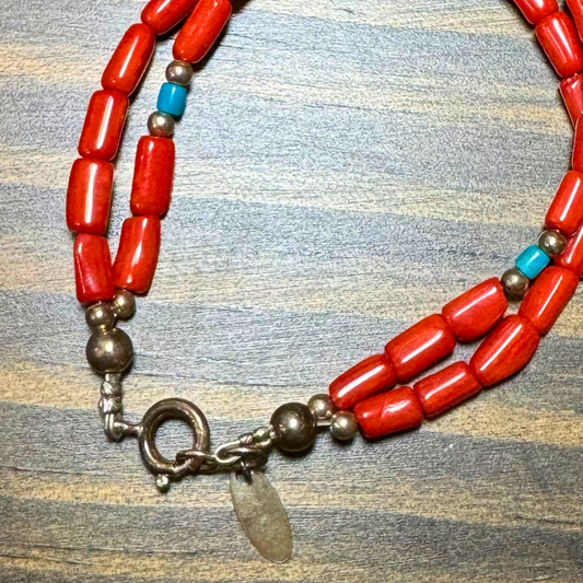 Native Running Bear R.B. Sterling Silver Coral Bead & Turquoise Bracelet
