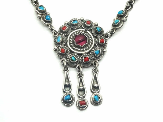 Vintage Taxco TM-206 Turquoise Coral & Crystal Sterling Silver Set MATL-Style