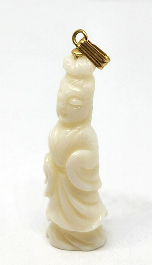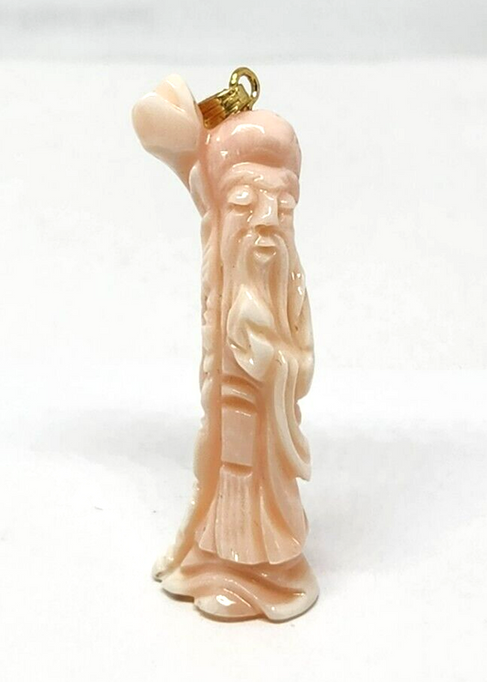 Vintage Mid-Century 3D Carved Coral Gold Filled Figurine Charm Pendant 1.75"