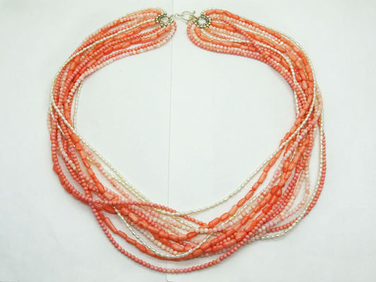 Natural Angel Skin & Rosa Pink Coral, Seed Pearl 11-Strand Necklace