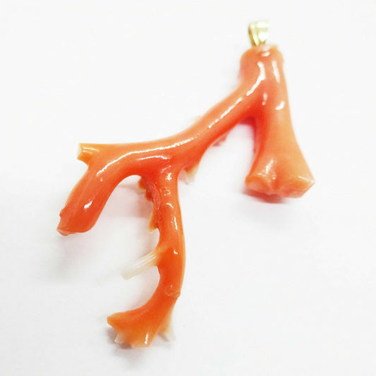 Natural Rose Pink Angel Skin Coral Branch Pendant 14k Gold
