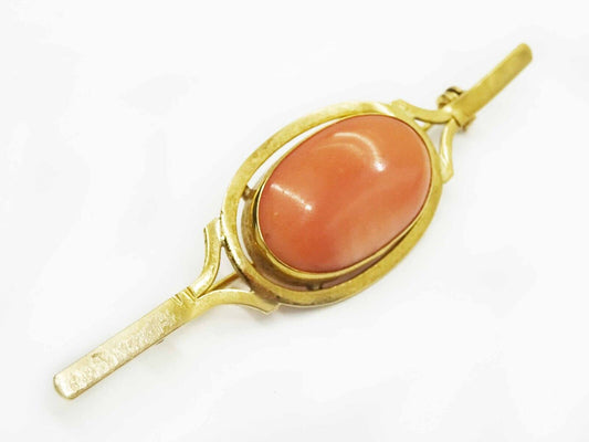Natural Salmon Pink Coral Oval Cabochon Pin 18k Gold