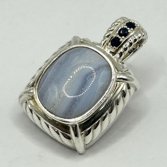 Judith Ripka Blue Lace Agate Cabochon Sapphire Sterling Silver Enhancer Pendant