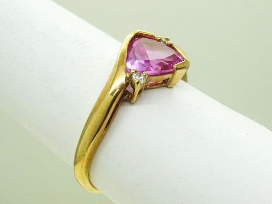 Lab-Created Trillion-Cut Pink Sapphire & CZ Ring 10k Gold Size 7
