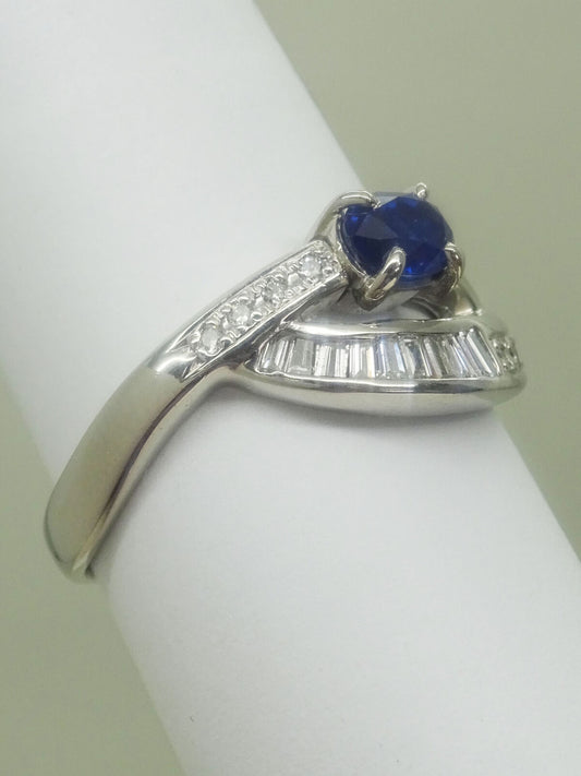 Natural Sapphire & Diamond Split Shank Platinum Ring Size 11.5