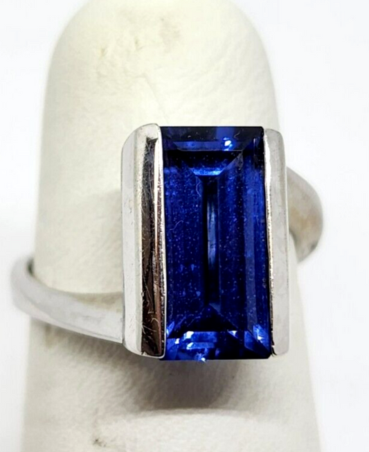 Men's Square Natural Sapphire & Diamond Accent Ring 10k White Gold Size 7.75
