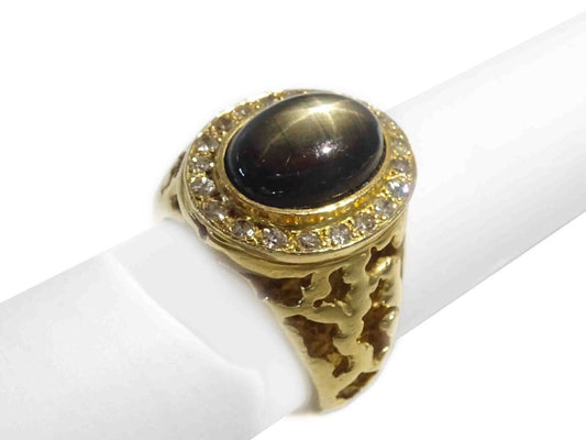 Men's Large Black Star Sapphire & Diamond Halo Ring 14k Gold Size 9