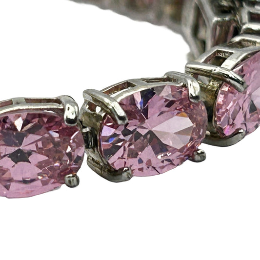Pink Lab Sapphire Gemstone 8" Tennis Bracelet - 25 Stones