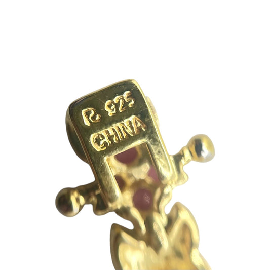 Veronica Wieck 925 Sterling Silver Pink Sapphire CZ Dangle Earrings Two Tone