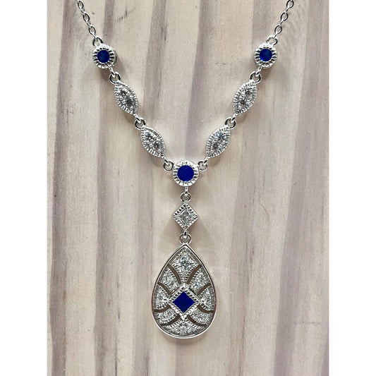 Ross Simons 925 Sterling Silver Sapphire Lariat Y Necklace Pendant Chain CZ