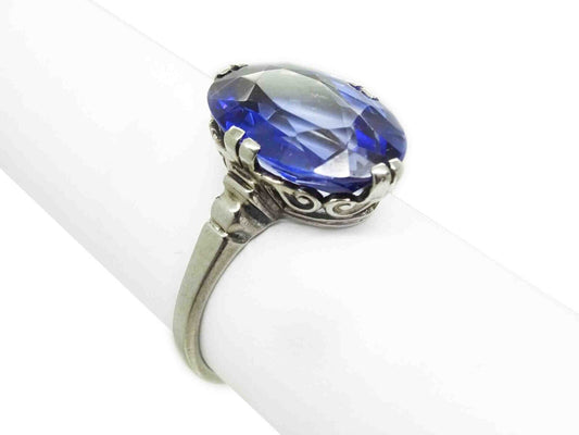 Victorian Lab-Created Synthetic Sapphire Filigree Ring 14k White Gold Size 6.25