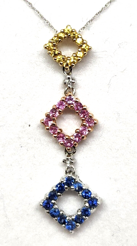 Tri-Color Sapphire & 10k Gold Necklace on 10k White Gold Chain, 18''
