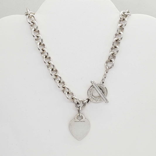 Vintage Tiffany & Co Heart Tag Toggle Necklace Sterling Silver 16" Long