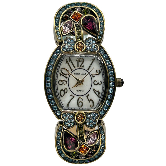 Heidi Daus Vintage Pastel Crystal Watch with Aqua Leather Strap - Needs Battery