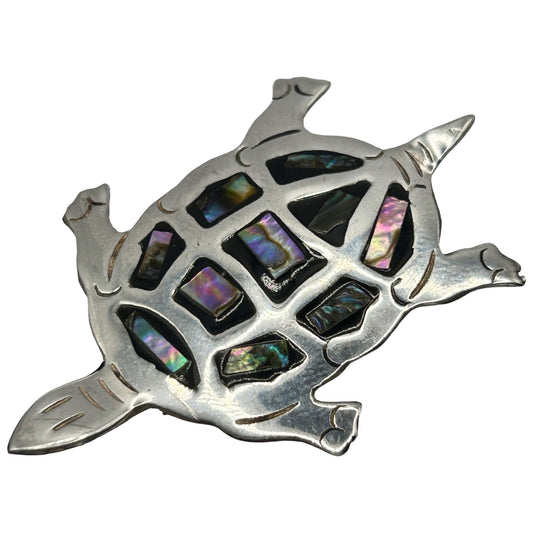 Vintage Taxco Sterling Silver Abalone Turtle Brooch Pin Handmade in Mexico