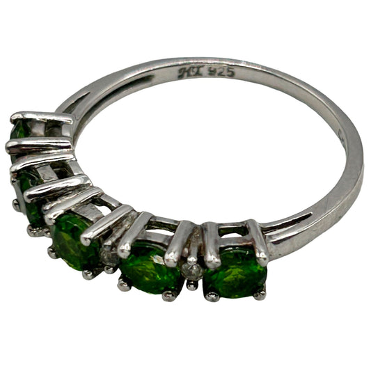 Chromium Diopside with White Topaz Rhodium Plated Sterling Silver Ring - Size 9