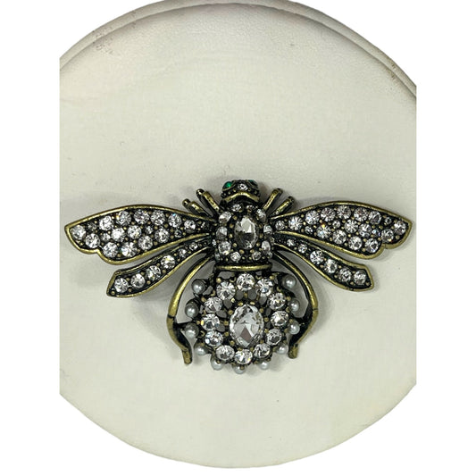Joan Rivers Bee Pin Brooch Crystals Signed Animal Bug Statement Clear Green