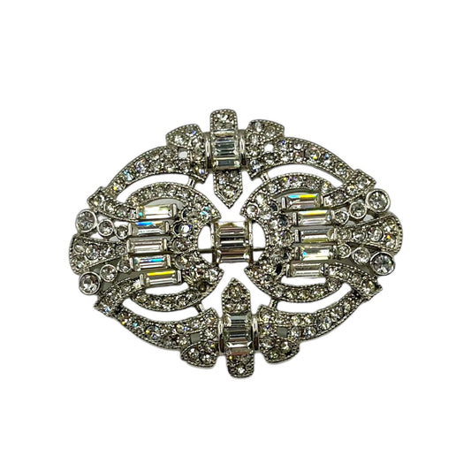 R.J. Graziano Estate Filigree Pin Brooch Baguette Rhinestones Statement Classic