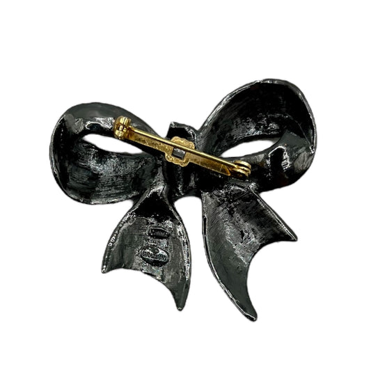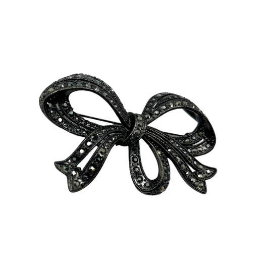 R.J. Graziano Gunmetal Bow Brooch Pin Big Statement Marcasite Ribbon