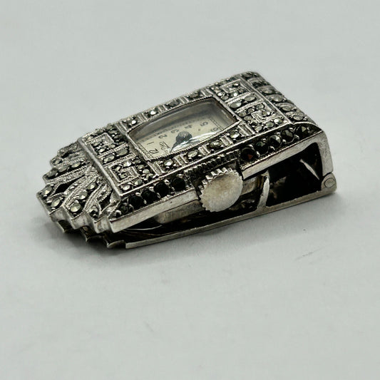 Antique Chronex Marcasite & 925 Sterling Silver Fur-Clip Watch - Windup Movement