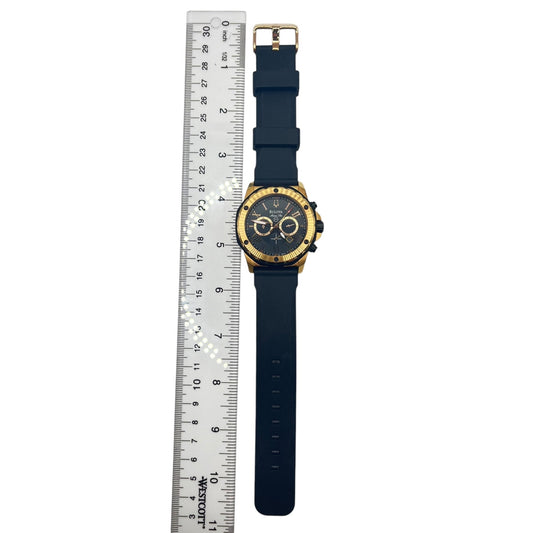 Bulova Men's Watch 96B104 Marine Star Gold Black Dial Black Rubber Strap