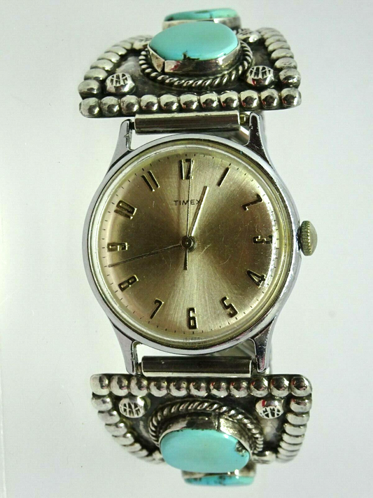 Timex Watch + Old Pawn Delvin J Nelson Thunderbird Turquoise Coral Sterling Tips