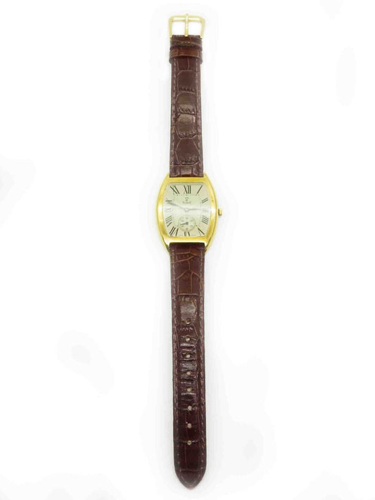 Vicence Milor Italy Ladies Watch Tonneau Barrel Case 14k Gold Brown Leather