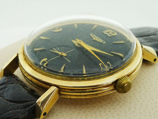 Vintage 1960s Men's Longines 14k Gold Watch Leather Strap