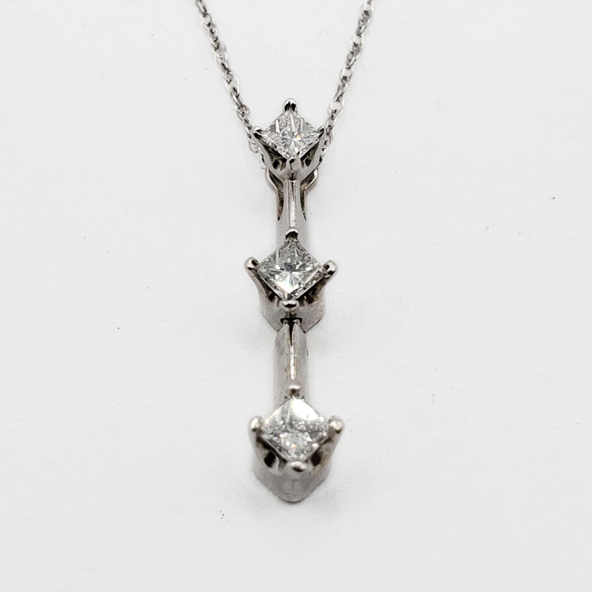 0.3 ctw Princess Diamond Past Present Future 3-Stone Pendant 14k White Gold