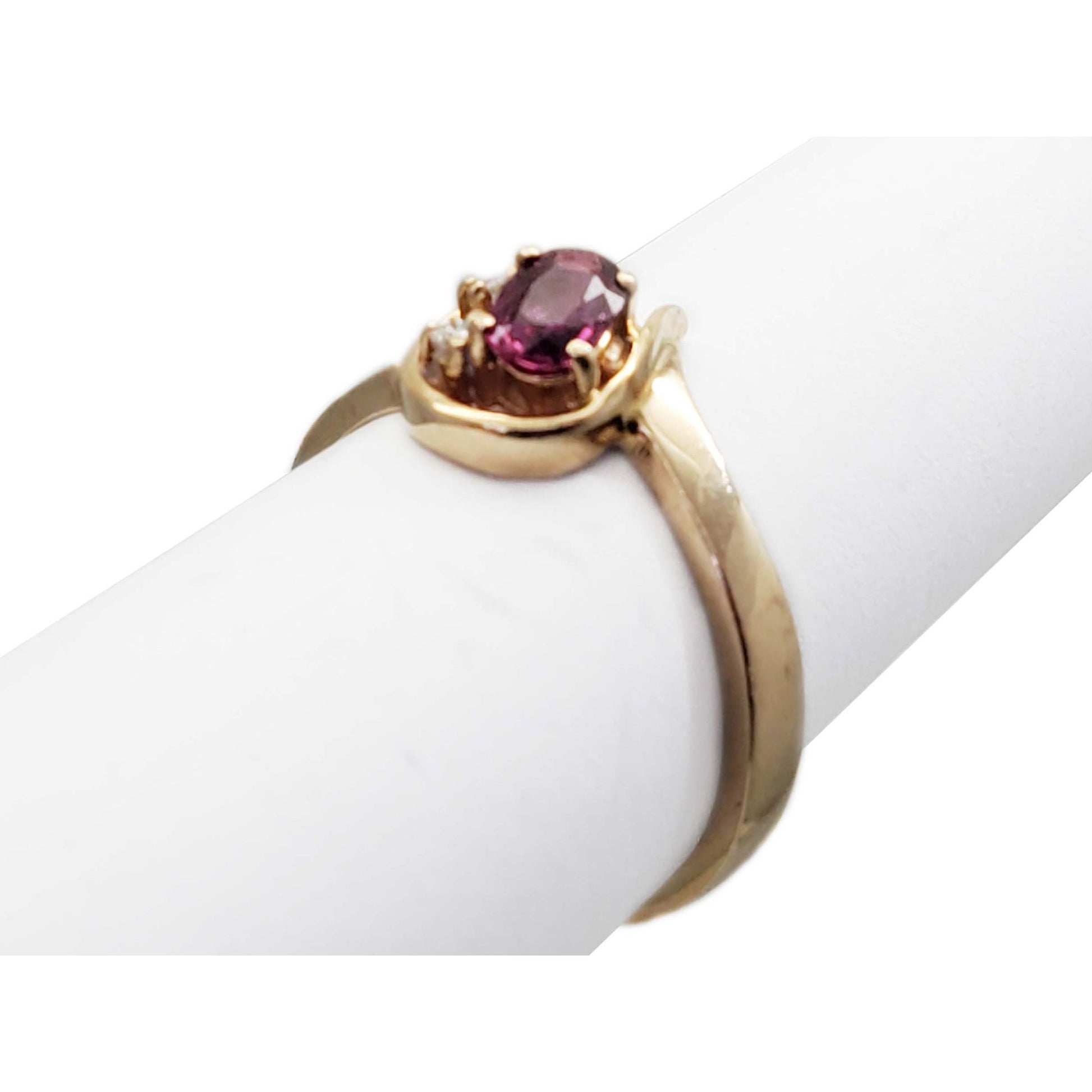 Center oval natural heat-treated ruby, approximate dimensions 5.7mm x 3.9mm, estimated at 0.40 ctw.